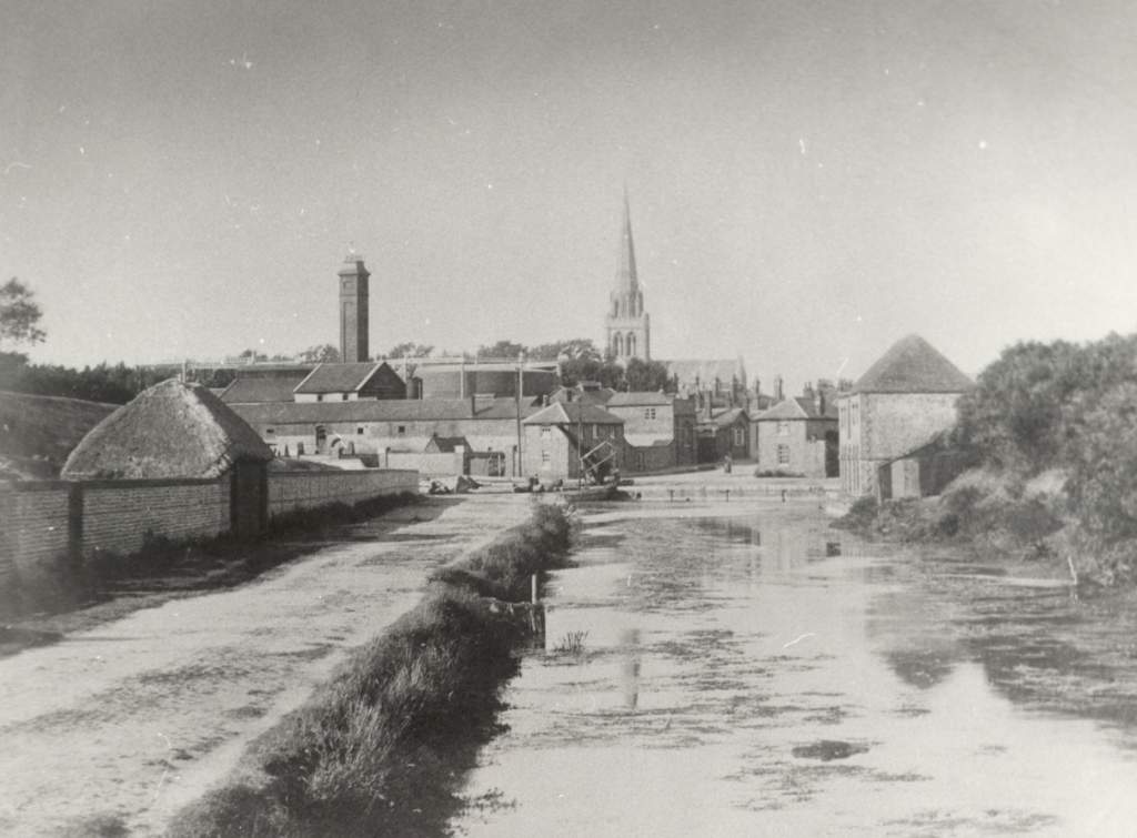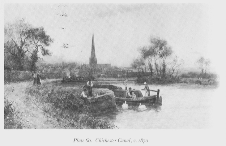 A 1.5 mile branch led from Hunston on the main line of the canal to a basin in Chichester. This and the short connecting length of the main line from Salterns to Hunston were built to a larger gauge and equipped with iron swingbridges to enable coastal ships of over 100 tons to reach Chichester. This was the only part of the canal that enjoyed even a modest success, bringing in building materials and coal, and taking away manure. It carried trade until 1906, while the rest of the canal had been unused since the 1840s and fallen derelict soon after.